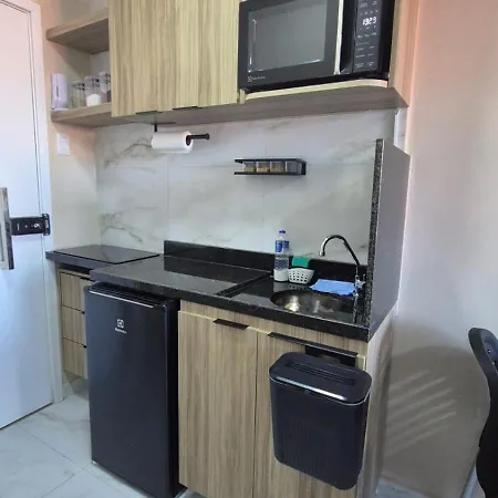 A fully-fitted kitchen is provided at Waikiki Garden - Luxuoso Flat Em Porto De Galinhas Apartment